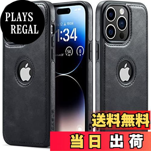 【送料無料】Sibada iPhone 14 Pro Max ケース ユニークなロゴが見えるデザイン レザー クラシック ラグジュアリー ビジネス 画面保護 レンズ保護 スリム薄型デザイン 携帯電話ケース 6.7" - Black