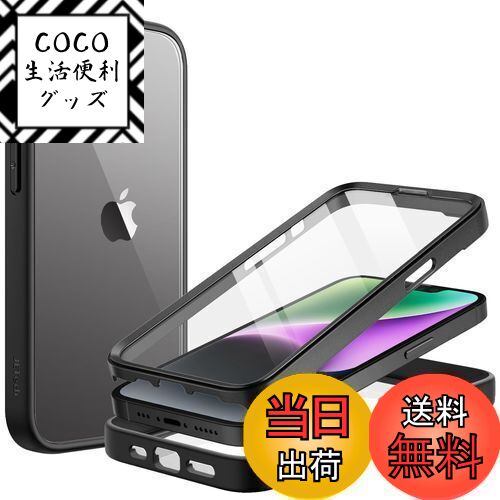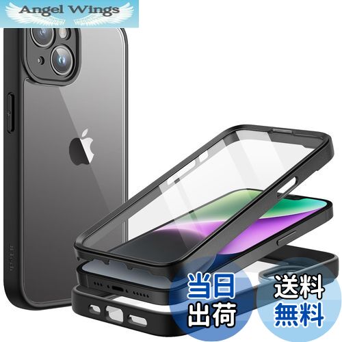 JEDirect iPhone 14用 ケース 6.1インチ 強化ガラスフィルム内蔵 カメラフルカバー 全面保護 衝撃吸収 バンパーカバー クリアバック HD フィルム (ブラック)