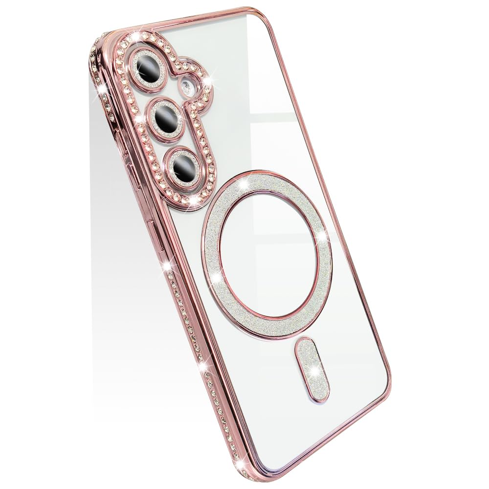 【送料無料】JOOBOY スマホケース 対応 Galaxy s24 ケース 透明 クリア メッキ加工 Magsafe対応 きらきら ブリンブリン 衝撃吸収 かわいい キラキラ 女性 人気 キャラクター ワイヤレス充電対応 おしゃれ ストラップホール付き ギャラクシーS24 携帯カバー (ピンク, Gal