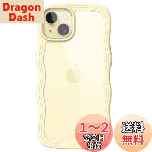 【送料無料】JETech iPhone 15 6.1インチ用 かわいい ケース 波状フレーム うねうね 耐衝撃 スマホカバー 女性用 女子向け クリア ハードPCバック (イエロー)