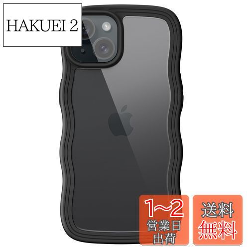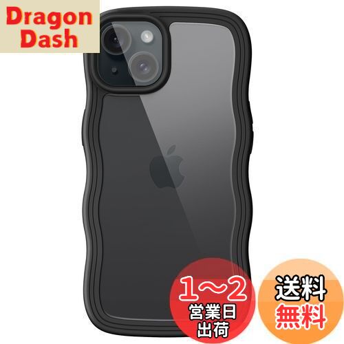 【送料無料】JEDirect iPhone 15 6.1インチ用 かわいい ケース 波状フレーム うねうね 耐衝撃 スマホカバー 女性用 女子向け クリア ハードPCバック (ブラック)