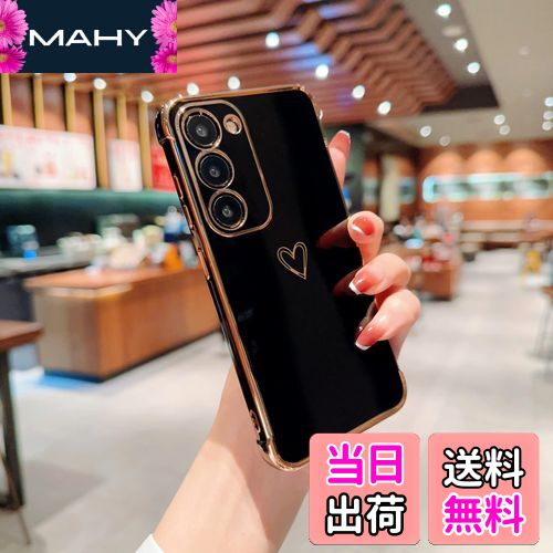 【送料無料】QLTYPRI Samsung Galaxy A53 5G ケース SC-53C/SCG15 ケース かわいい メッキラブハートソフト TPU カバー 女性 人気 軽量 スマホケース レンズ保護 落下防止 カバー ワイヤレス充電対応 ストラップホール付き ギャラクシーA53用カバー - ブラック
