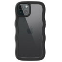 【送料無料】JEDirect iPhone 14 Plus 6.7インチ用 かわいい ケース 波状フレーム うねうね 耐衝撃 スマホカバー 女性用 女子向け クリア ハードPCバック (ブラック)