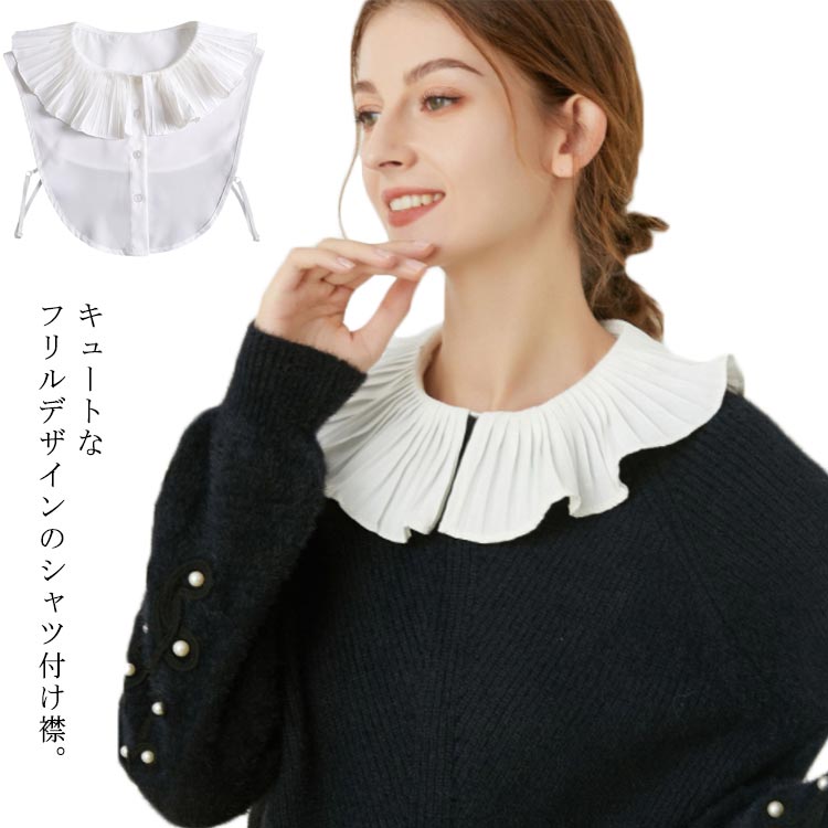 カジュアル シャツ襟 送料無料 フリル レディース フリルネック 重ね着風 レイヤード 付け衿 つけ衿 フォーマル つけ襟 大人可愛い ホワイト
