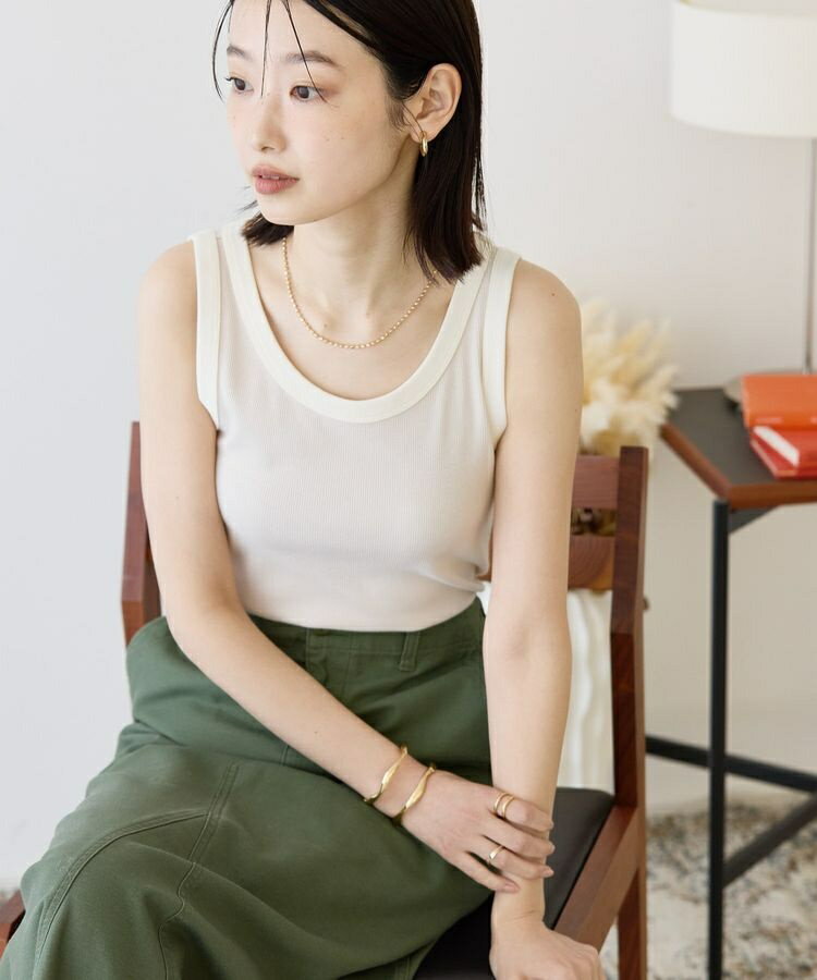 [型番:0H000537500]直線的なスクエアネックがスマートな印象のキャミソール。インナーレスでさらっと着こなせる便利なカップ付きデザインです。 肌触りのソフトな細リブ素材で動きやすいのも魅力のポイント。程よいフィット感のコンパクトシルエットでレイヤードスタイルにも最適なおすすめアイテムです。透け感[ややあり]生地の厚さ[薄手]光沢感[なし]伸縮性[あり]裏地[あり]ポケット[なし]※モデル着用画像は、光の当たり具合で色味が違って見える場合がございます。※お使いのモニター環境によって商品の色味が違って見える場合がございます。25AW■カラー:6色展開M:身幅:35 着丈:45 裾幅:38L:身幅:38 着丈:47 裾幅:41※( )で表記されている数字はヌードサイズです。ヌードサイズとは衣服を身につけない身体のサイズです。お客様ご自身の身体サイズと比較してお選びください。 ■素材: 本体 ホ゜リエステル 65% レーヨン 29% ホ゜リウレタン 6% 別布部分 綿 94% ホ゜リウレタン 6% ■お手入: >>商品のお取り扱い方法 ■原産国: ミャンマー【カップ付き】細リブキャミソール/アメリカンホリック(AMERICAN HOLIC)アイボリーチャコールグレーブラックオレンジブラウングリーン画面上と実物では、多少色具合が異なって見える場合がございます。