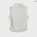 フリル シャーリング トップス レディース 春夏 かわいい と アメリカ 無地 サイド プリーツ タートルネック ベスト レディース ショート 夏 スリムフィット ノースリーブトップ シャツ