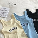 タンクトップ アメリカンスリーブ レディース 英字 刺繍 リブ ノースリーブ トップス