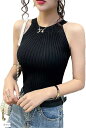 ベイブスター レディース ノースリーブ リブ サマー ニット ホルターネック アメリカンスリーブ B470ーBK(ブラック, Free Size SlimShort)