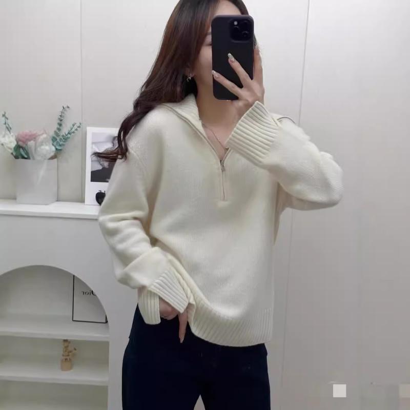 ・素材: カシミヤ・厚さ: 厚手・スタイル: プルオーバー・フィット: ゆったり・袖: ドロップショルダー・襟: 襟付き・袖丈: 長袖・デザイン: ジッパー・着丈: ミドル丈(50cm超~65cm以下)・カラー: キャメル、オレンジ、ホワイト・サイズ: S、M、L・テイスト: 通勤・素材構成: カシミヤ95%以上・アイテム: セーター、ニット