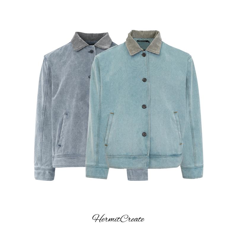 アウター メンズ ジャケット パーカ HermitCreate ウォッシュド ジャケット ヴィンテージ フライド ソルト ダメージ 加工 ブロークン ショート ワイド ボックス クリーン フィット