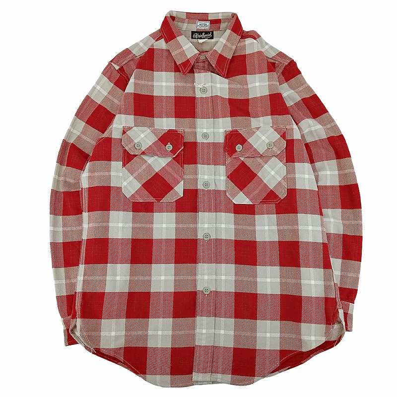 FREEWHEELERS フリーホイーラーズ MOTOR PSYCLONE GARAGE SERIES "NOMAD" WORK SHIRT ノーマッド ワークシャツ 長袖 タグ付き 2433001 サイズ17 ORANGE RED×GRAY BEIGE×CREAM×GREEN 【中古】