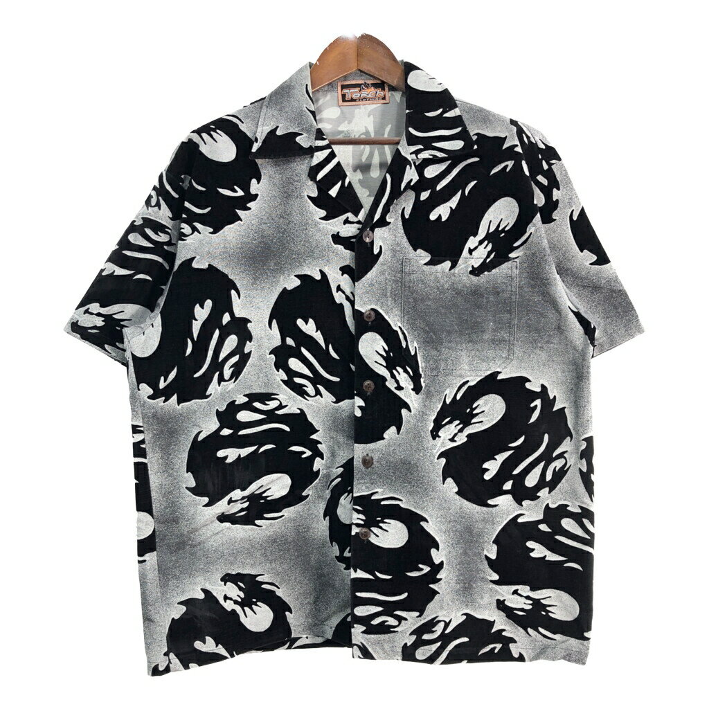 00年代 Torch CLOTHING ドラゴン トライバル オープンカラー 半袖シャツ 大きいサイズ 総柄 グレー(メンズ 2XL相当)中古 古着 T8585