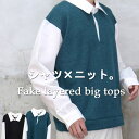 【MAX50%OFF決算SALE!11日01:59迄】 『シャツ×ニット』 フェイクレイヤードビッグトップス トップス メンズ シンプル フェイクレイヤード トップス ニット シャツ ビッグ トップス 長袖 トップス コットン配合 韓国服 韓流服 春服 メンズ