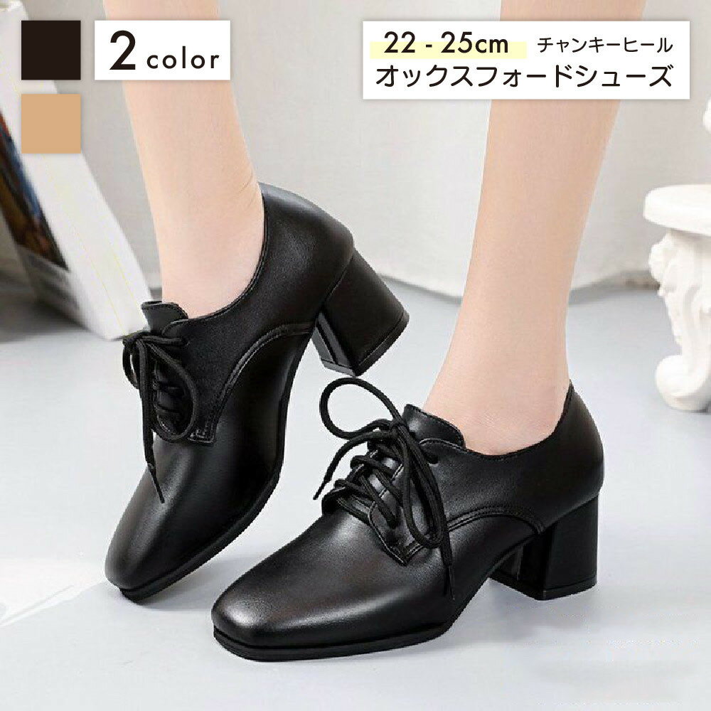 送料無料 オックスフォードシューズ レディース レースアップシューズ おじ靴 革靴 紐靴 婦人靴 PUレザー チャンキーヒール 滑り止め ゴム底 くつ プレーントゥ 外羽根 ブラック スーツ ビジネス カジュアル シンプル 通勤 通学 普段使い デイリー 女性 彼女 妻 友達 ギフト