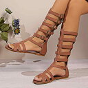 サンダル レディース 春夏 フラットソール オープントゥ ロングブーツ レザー風 バックストラップ ローマ風 魚の口 婦人靴 36 37 38 39 40 41 42 43 棕色 ゴールド シルバー 普段使い