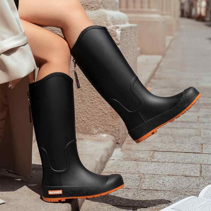 雨靴 レディース 防水 婦人 長靴 ロング丈 滑り止め 厚底 フラットソール かわいい おしゃれ カジュアル 学生 普段使い 黒 白 ブラウン 緑 ブラック系