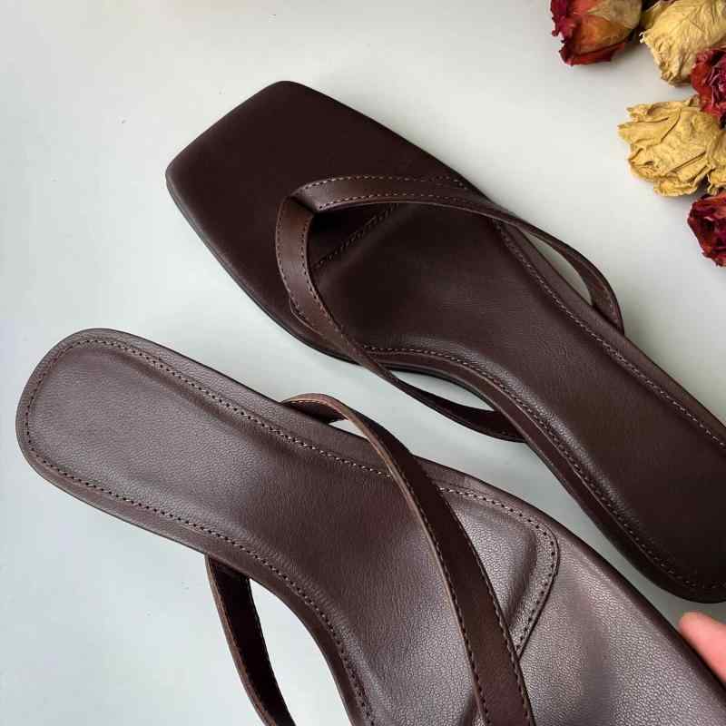 サンダル レディース ビーチサンダル トング 合成皮革 方頭 小猫ヒール ミドルヒール 普段使い 橡胶ソール ブラック 黒 ブラウン 茶色 2025春夏