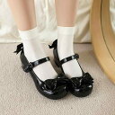 靴 パンプス レディース エナメル ロリータ かわいい リボン 太ヒール ハイヒール ラウンドトゥ 合成皮革 ブラック ホワイト ピンク 春秋 日系スタイル フェミニン ガーリー お洒落