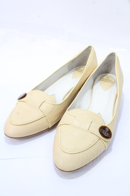 税込3980円以上購入で【送料無料】【USED】Vivienne Westwood / レザーフラットパンプスヴィヴィアンウエストウッド ビビアン37 ベージュ 【中古】 Y-25-09-07-062-sh-SZ-ZY