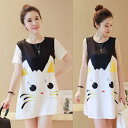 ・カテゴリ: ワンピース・スタイル: 韓国風・厚さ: 普通・ネックライン: ラウンドネック・袖丈: 半袖・丈: ミドル丈・主な素材: 綿90%・柄: カートゥーン・カラー展開: ホワイト・サイズ展開: M,L,XL,XXL