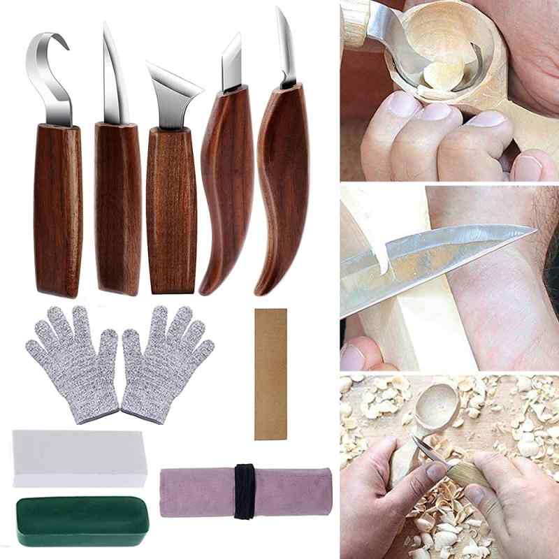 木製彫刻ツールキット カービングナイフ セット 彫刻刀 木工 木彫り フックナイフ ブレード研ぐ ウッドカービング 彫刻 篆刻 伝統工芸 DIY工具 プロ 初心者