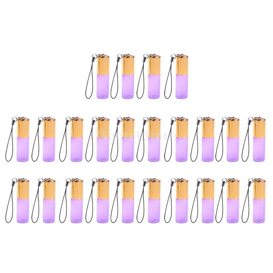 約24個 ボトル ローラーボトル オイルボトル 香水ボトル コスメ 詰替え ガラス DIY 5ml 持ち込み便利 高品質 全6色選択可 - 紫
