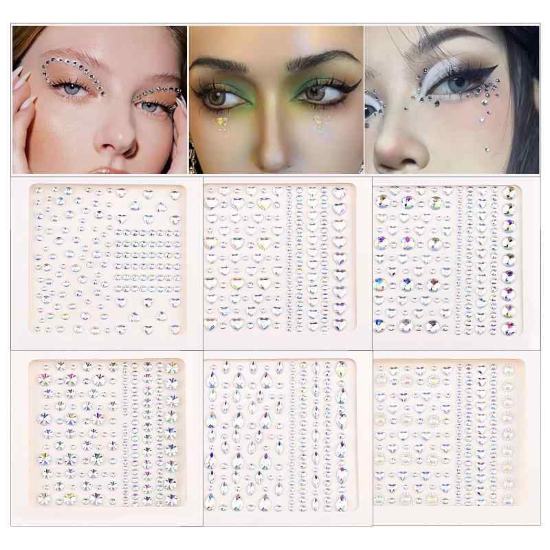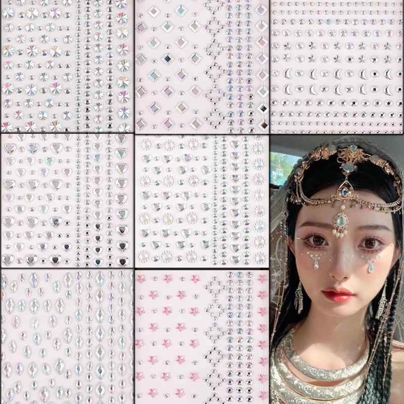 メイク ラインストーンシール キラキラ フェイスステッカー 3D 光る ラインストーン 顔シール メイクで輝く キラキラシール フェイス シール ラインストーン シール デコシール ラインストallbeschoi