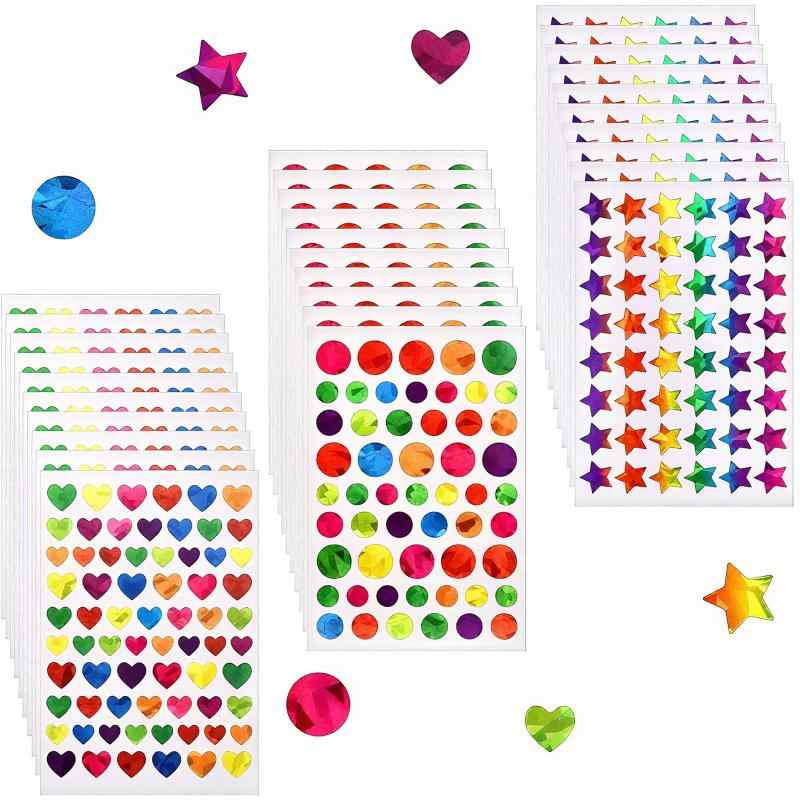 YFFSFDC キラキラシール キラキラ ステッカー ご褒美シール 子供たちのご褒美 DIY手作 大容量 星/ハート/円形 30シート