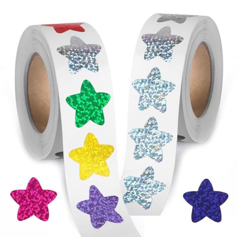 スターステッカー 2巻 1000枚 ごほうびシール 星 シール キラキラシール 封筒シール 大容量 可愛い ステッカー 手帳 飾り 子供 学生 学校用