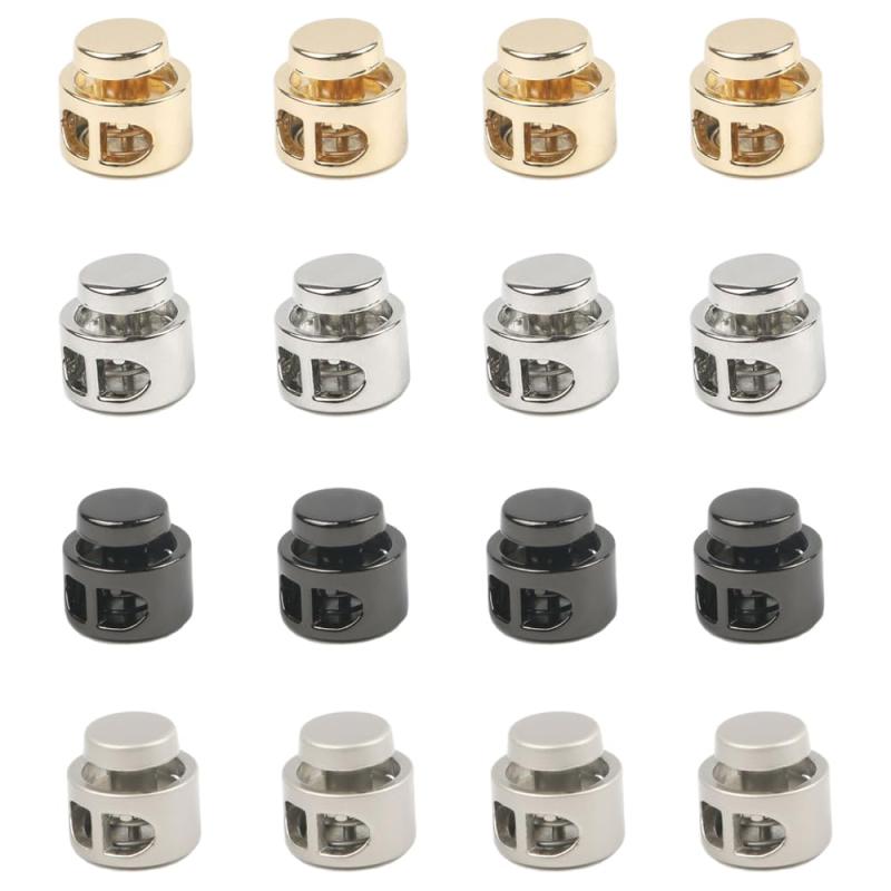 YFFSFDC コード ストッパー 2穴 金属 16個セットコードロック ストッパー 調整ストッパー 紐 丸型 穴径約4mm シューレースストッパー 交換 補修用