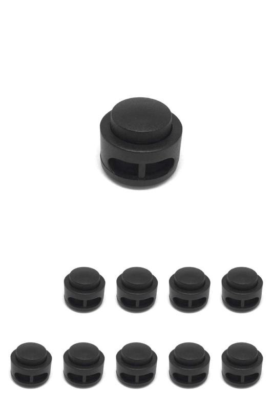 スプリングコードストッパー 2つ穴 2本用コードロック 丸型 穴径約6mm ブラック(10個入り)
