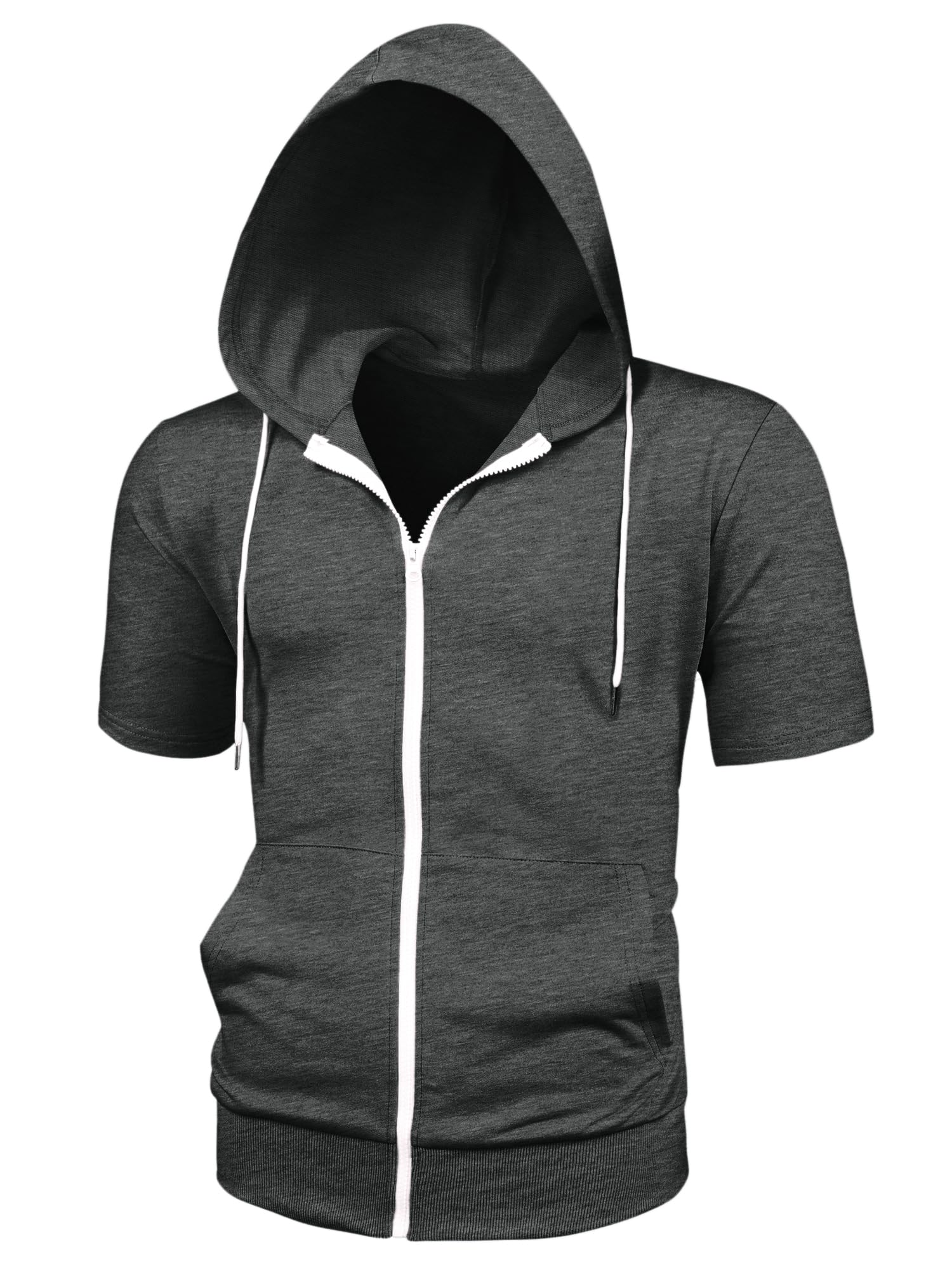 [Lars Amadeus] パーカー スウェットシャツ パーカ フード付き 半袖 ジッパー メンズ ダークグレー L