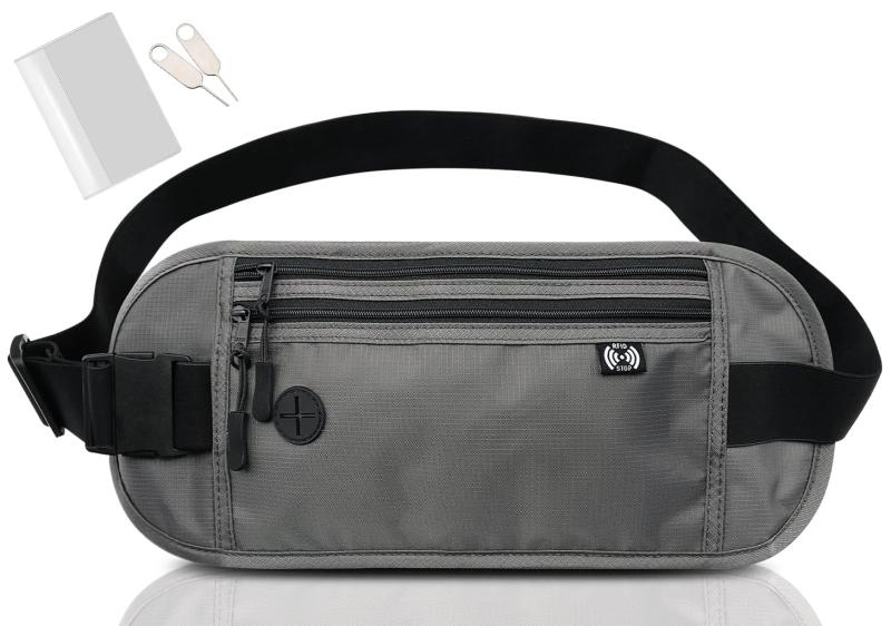 MellbreeセキュリティポーチウエストポーチRFIDスキミング防止スリ対策シークレットポーチ薄型海外旅行貴重品ポーチ多機能軽量旅行便利グッズ防犯グッズ(ブラック)
