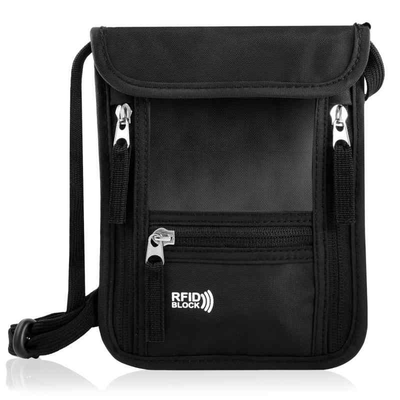 スリ対策用セキュリティポーチ 超軽量極薄素材 大きめサイズで収納力UP スキミング防止機能で盗難リスク軽減 シークレットポーチ ネームタグ付き