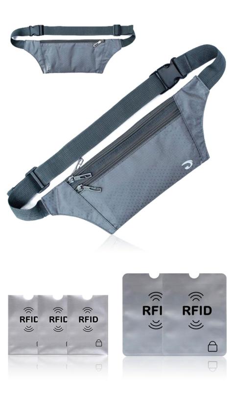 ウエストポーチ セキュリティポーチ スキミング防止 RFID 薄型 軽量 海外旅行 貴重品入れ パスポート 隠せる ランニングポーチ 防犯グッズ 盗難対策 旅行 防水 メンズ レディース