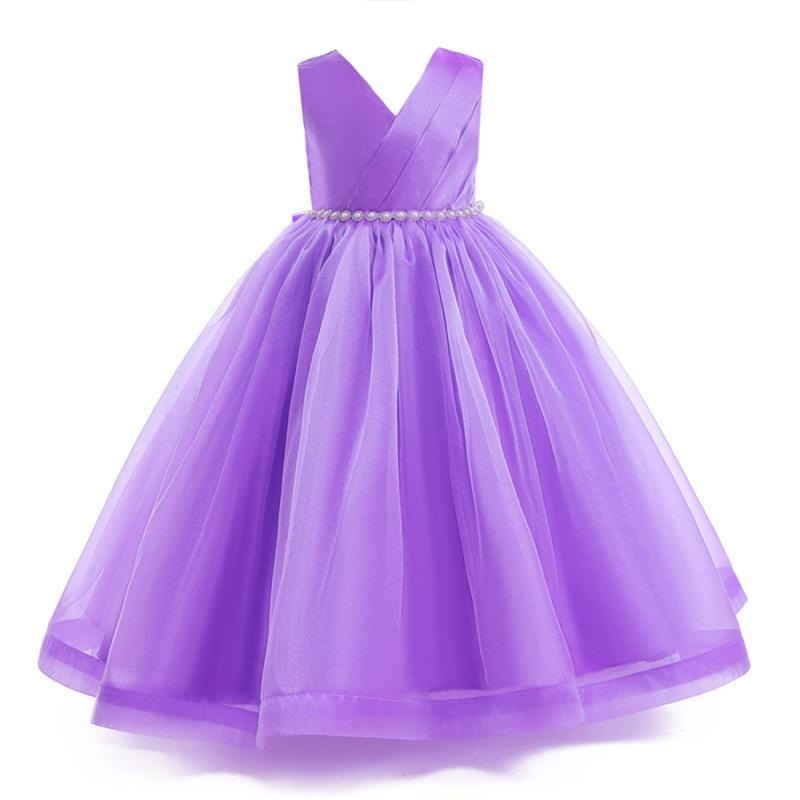 [OWIEOW] キッズ ピアノ 発表会 ドレス 子供 子ども ドレス フォーマル ロング ドレス エレガント 演奏会 無地 ビーズ 女の子 パーディー 結婚式 花嫁介添人100-150cm