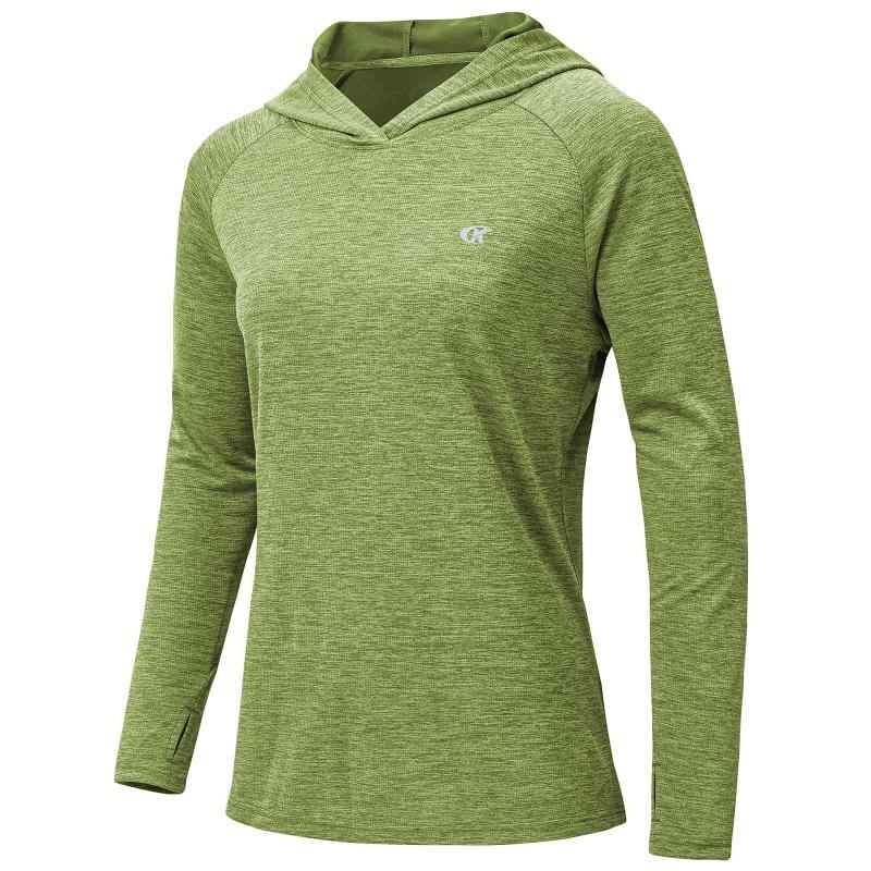 [Yundobop] ラッシュガード レディース UVカット パーカー 日焼け対策 長袖Tシャツ スポーツ トレーニング メッシュ 通気性 速乾 軽量 薄い 伸縮性 指穴付き フード付き 萌黄 S