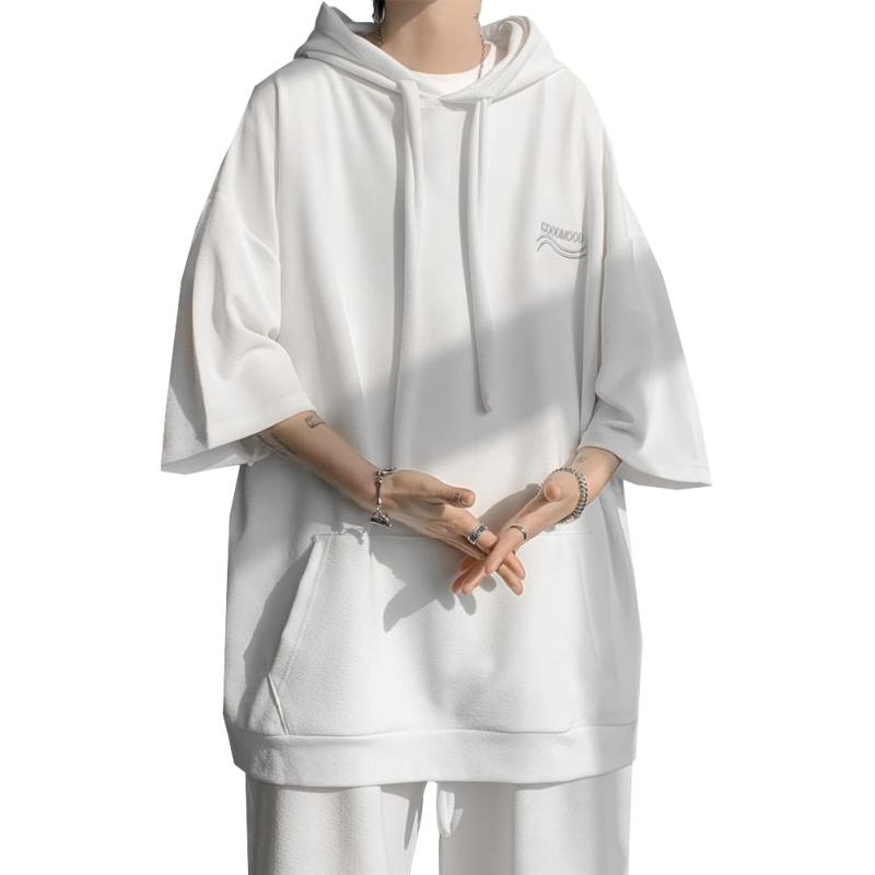 [Anzn] 夏服 パーカー メンズ 半袖 薄手 Tシャツ フード付き かっこいい スポーツ ゆったり カジュアル プルオーバー カジュアル ゆったり フーディー トレーナー 柔らかい おしゃれ 大きいサ