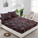 ベッドシーツ ポリエステル 3Dプリント 幾何学柄 抽象模様 ブラック レッド オールシーズン対応 敷きパッド 寝具カバー アメリカン スタイル