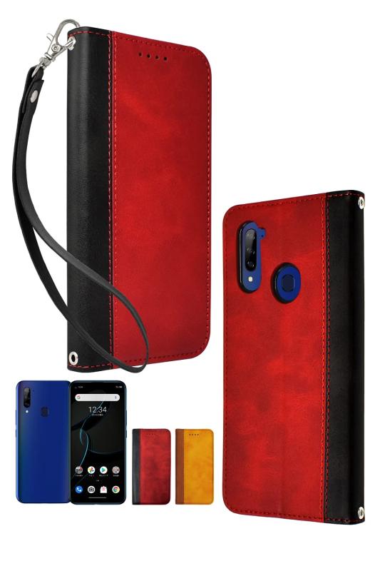 シズカウィル ZTE Libero 5G A003ZT ケース カバー バイカラー 手帳型 ボルドーレッド×ブラック色 1個入り