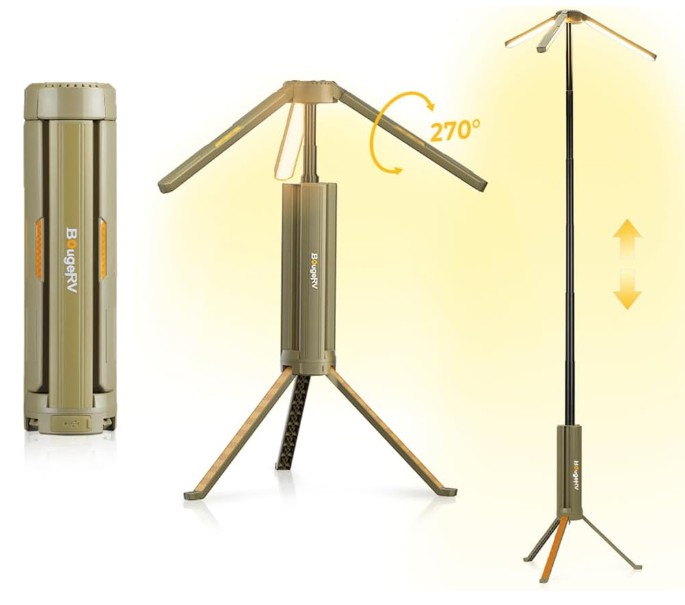 商品情報 商品の説明 主な仕様 【高輝度3000ルーメン】BougeRV CL04キャンプランタンは全点灯時に最大3000ルーメンの明るさを提供し、50平方メートルの広い範囲を照らします。キャンプやアウトドアでの夜間活動に最適です。 【多機能設計】このキャンプランタンは折りたたみが可能で、高さ調整範囲は27cmから164cmまで自由自在です。また、吊り下げもでき、多様なシチュエーションで使用できます。さらに、明るさ調整、色温度切替(3000K、6000K)、SOSモードに対応し、懐中電灯としても使える万能なアイテムです。 【安定したスタンド付き】 頑丈なスタンドが付属しているため、自立可能です。さらに地面に固定するためのペグも同梱されており、屋外の強風にも負けず安定した照明を提供します。 【自在な角度調整】上下180°と左右270°の広範囲で照明角度を調節可能。この機能により、どんな場所でも理想的な照射角度を実現します。 【長時間の内蔵バッテリー】15600mAhの大容量バッテリーを搭載し、最大60時間の連続使用が可能です。また、USB-C出力ポートも付きので、災害時や停電時に他のデバイスへの充電もサポートしています。 【USB充電式】クイック充電が可能で、約4.5時間でフル充電完了。さらに、専用の電池が不要なので、追加コストを気にせず即座に使用できます。家庭や車のUSBポートで簡単に充電できるため、いつでも準備万端です。 【防水性能IP54】 防水仕様(IP54)で雨や埃にも強く、様々な環境で安心して使用できるアウトドア用ライトです。 【ユーザーフレンドリーなデザイン】 暗闇で製品を見つけやすくするために、特別な黒暗反射素材を使用しています。これにより、突然の停電時や野外での緊急時にも素早くキャンプランタンを見つけ出せます。安全性が向上するとともに、不意の事態にも迅速に対応可能です。また、電池残量が一目でわかる電量表示機能付きなので、突然の電池切れも心配ありません。 【充電に関する注意事項】 必ずCL04に付属の充電ケーブルを使用してください。他のデバイスにUSB-Type-Cで充電することは避けてください。