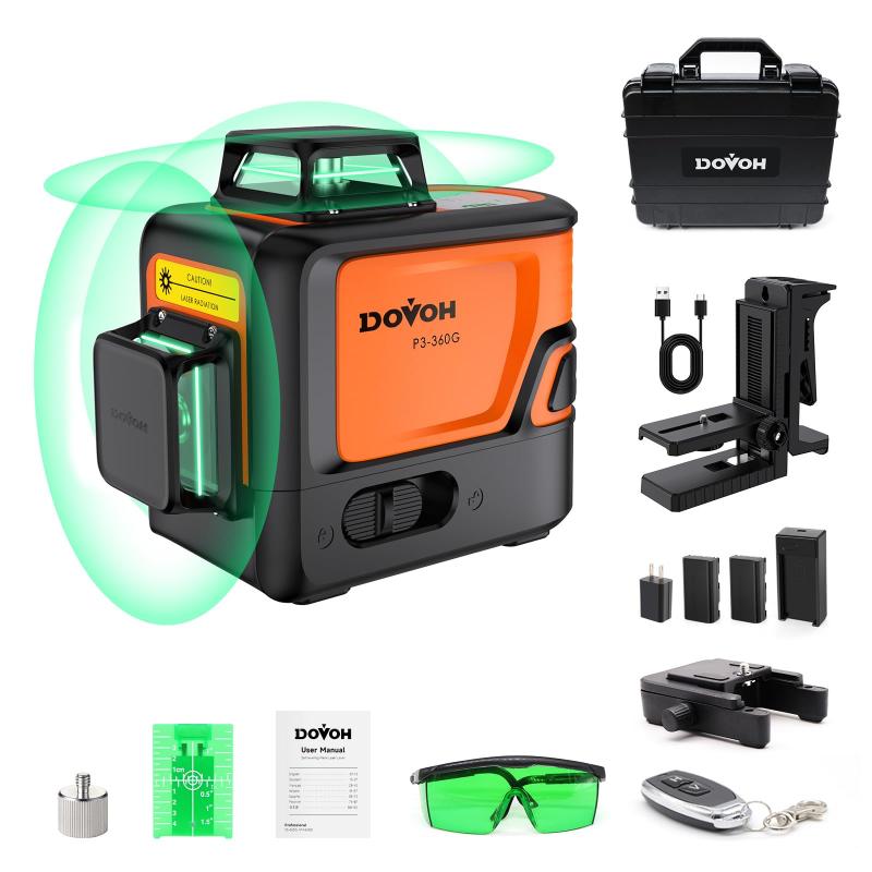 DOVOH 高輝度 レーザー墨出し器 受光器付き 昼光高視認性レーザー水平器 360 自動整準 最大 400 フィート/120M 長距離 110mw 高出力 グリーン レーザーレシーバー付き 屋外用 H3-360G-KITレーザークラス:クラスII. IEC 60825-1:2014<1mW、520nm【レシーバー付き屋外用】このDOVOH H3-360Gレーザー墨出し器キットは高性能レーザー墨出し器受光器を搭載し、直射日光の下でも正確な信号検出と強化された視認性を確保し、屋外プロジェクトに最適です。【視認性の高いグリーンレーザーライン】この屋外レーザー墨出し器360セルフレベリングは、110mWのハイパワーレーザーダイオードを利用して、一般的なレーザー墨出し器に使用されている30mWダイオードよりも大幅に強力な明るいグリーンビームを投射します。強力なレーザービームは、受信機で作業する際の範囲を広げます。【アウトドアに便利なアクセサリー】DOVOH H3-360Gレーザー墨出し器にはターゲットプレートとグリーングラスが付属しており、太陽光の下でレーザービームの視認性を高め、屋外条件下で効率的な性能を確保します。【二重の耐衝撃構造】DOVOH H3-360G建築用レーザー墨出し器はユニークな二重の耐衝撃設計を採用し、コアアセンブリは2層のクッションゴムで包まれ、衝撃を吸収し、耐久性を確保します。この頑丈な構造は、ツールの寿命と信頼性を高め、厳しい現場条件に理想的です。【デュアル大容量バッテリー】DOVOH H3-360Gアウトサイドレーザー墨出し器はデュアル7.4v 2600mAhバッテリーを搭載しており、動作時間を延長し、頻繁な充電の必要性を減らし、長期のプロジェクトで中断のない性能をします。