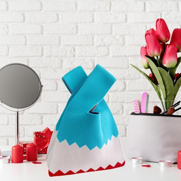 レディース ニット トートバッグ 夏 美しい ショルダー バッグ ビーチ パーティー バケーション用 レッド