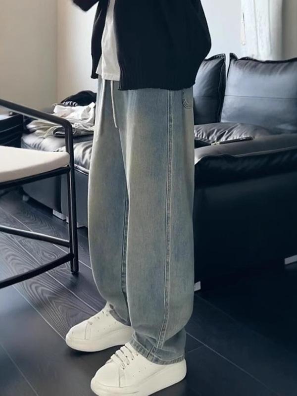 デニムパンツ メンズ ゆったり ストレート ジーパン ズボン ウォッシュ加工 伸縮性 ヴィンテージ風 カジュアル 春秋