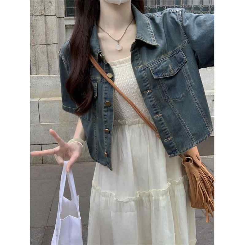 デニムジャケット レディース 半袖 デニムシャツ ブラウス ゆったり 薄手 ショート丈 春夏 ヴィンテージ風 ウォッシュ加工 カジュアル