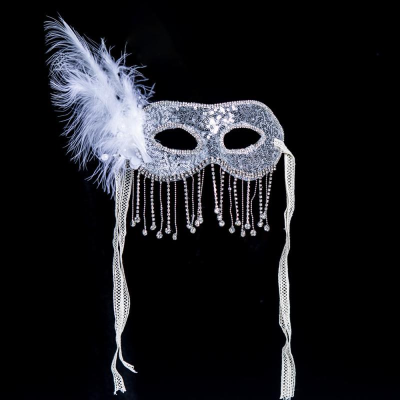 マスク レディース ハーフフェイス ホワイト 優美なベール フェザー ラインストーン スパンコール装飾 中国風 舞台 ステージ 撮影 イベント パーティー コスプレ ハロウィン 仮装