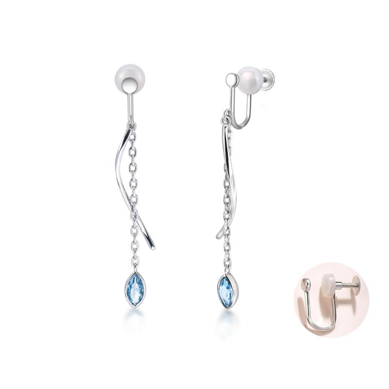 FH.bird ブルートパーズ イヤリング レディース 青い 【優美な線】 シルバー925 金属アレルギー対応 痛くない イヤリング 11月誕生石 揺れる 軽い 誕生日 パーティー プレゼント 女性 ジュエリ
