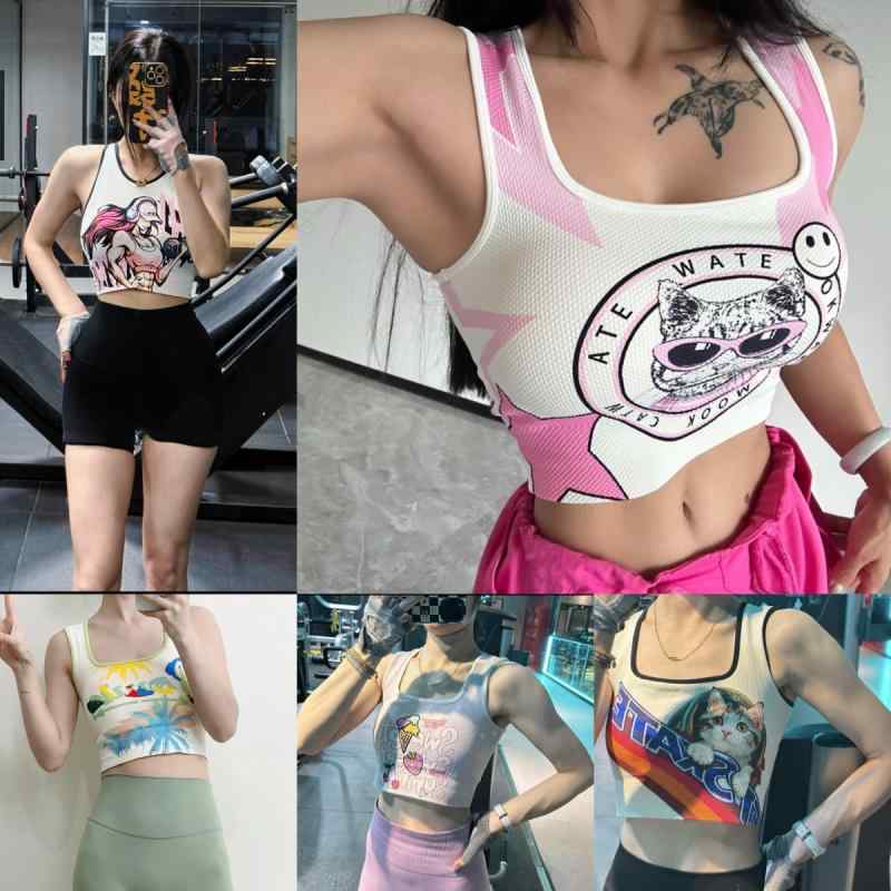スポーツブラ 一体型 レディース ヨガブラ 揺れにくい ランニング ウェア フィットネスブラ トレーニング 運動 インナー 接触冷感 吸湿速乾 高強度 パッド付き・スタイル: 運動休闲・適用人群: 若者女性・是否无缝: 是・是否有钢圈: 无钢圈・设计特色: 其他・罩杯型: 1/2罩杯・模杯类型: 厚模杯・肩带类型: 无肩带・适合季节: 夏季,春季,秋季・误差范围: 1-3cm・适用场景: 跑步运动,健身器材,运动潮流・颜色: 撸铁女孩,夏日椰树,草莓冰淇淋,黒边口袋猫,ピンク眼镜猫,爱心笑脸・尺码: S,M,L