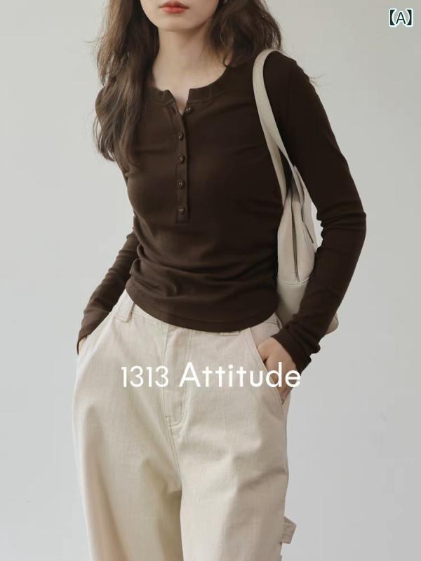 2Tシャツ レディース 長袖 スリム ブラウン トップス 薄手 裏起毛 インナー 接触冷感 吸湿速乾 ストレッチ 伸縮性 普段使い レイヤード