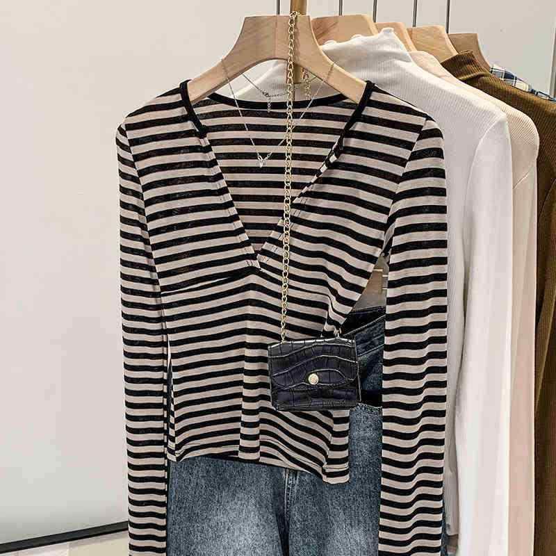 Tシャツ レディース 春秋 Vネック ストライプ 長袖 トップス インナー 接触冷感 吸湿速乾 カットソー 普段使い 部屋着 かわいい 女性用